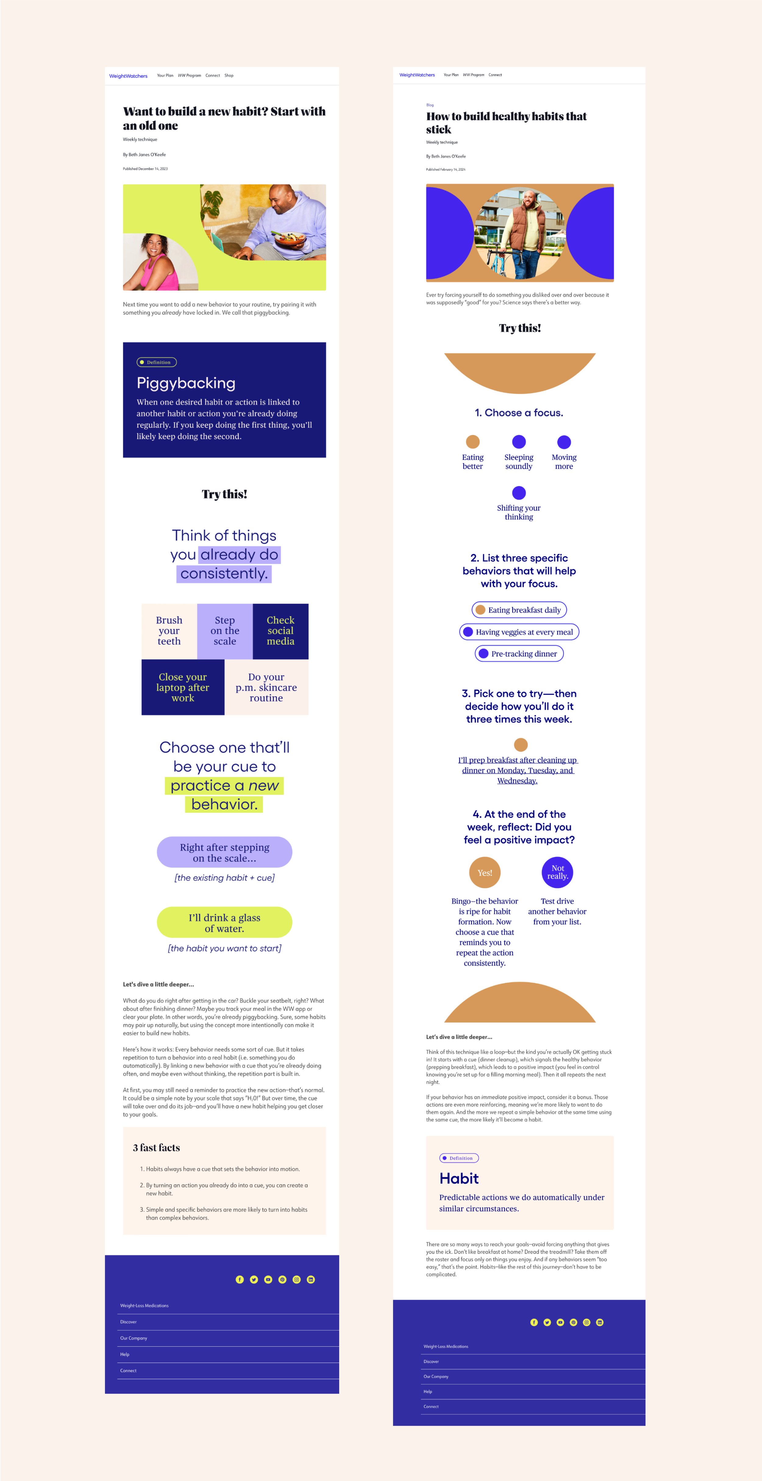 At WW, I was responsible for crafting and maintaining web pages and building informative articles that aligned with the brand’s goals.